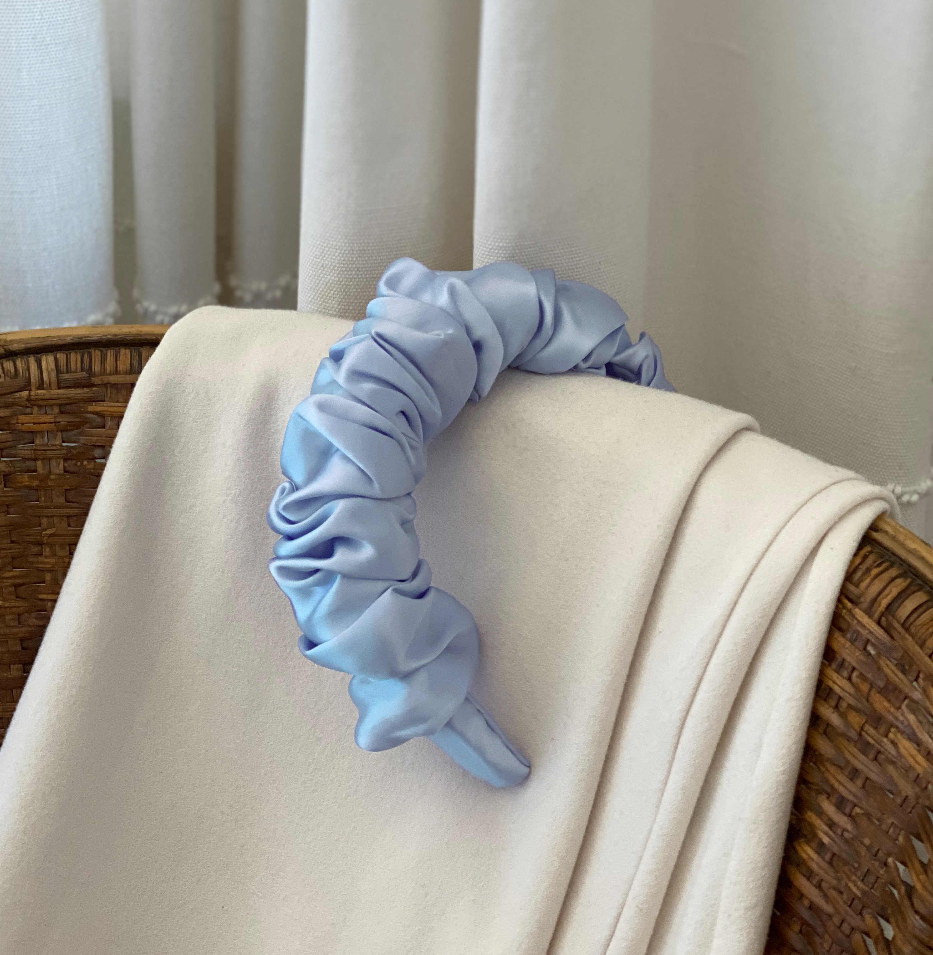 The curly and soft headpiece you need for this season: an exuberant satin headband to adorn the face with pleating and waves. The perfect face-framer. Suitable for all face shapes and hair styles.
