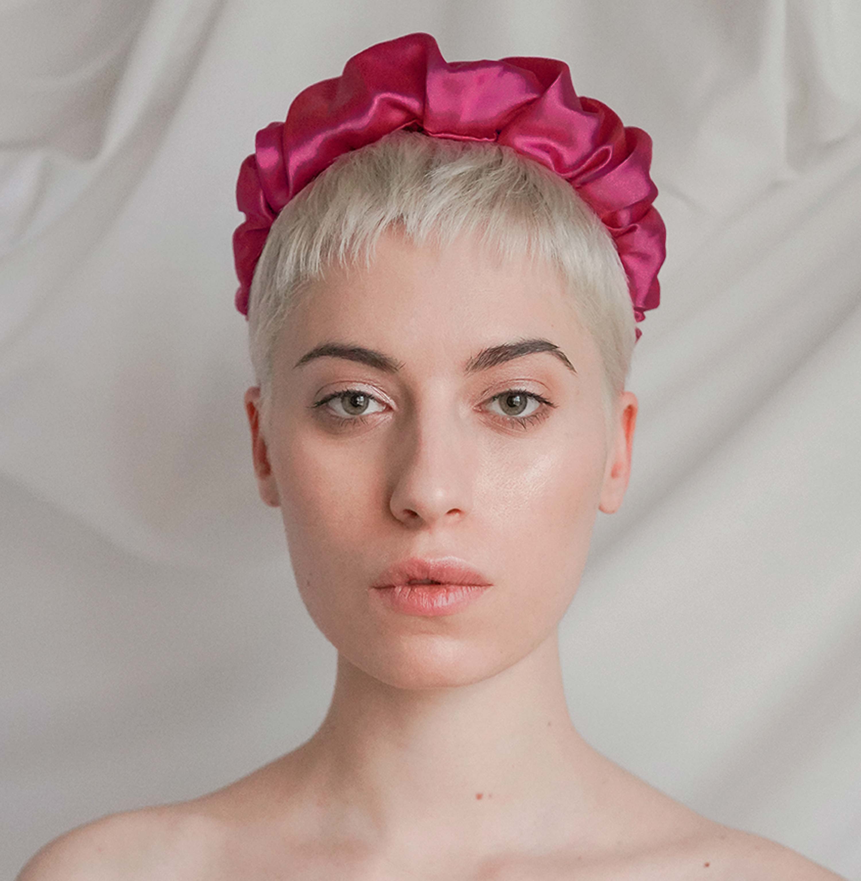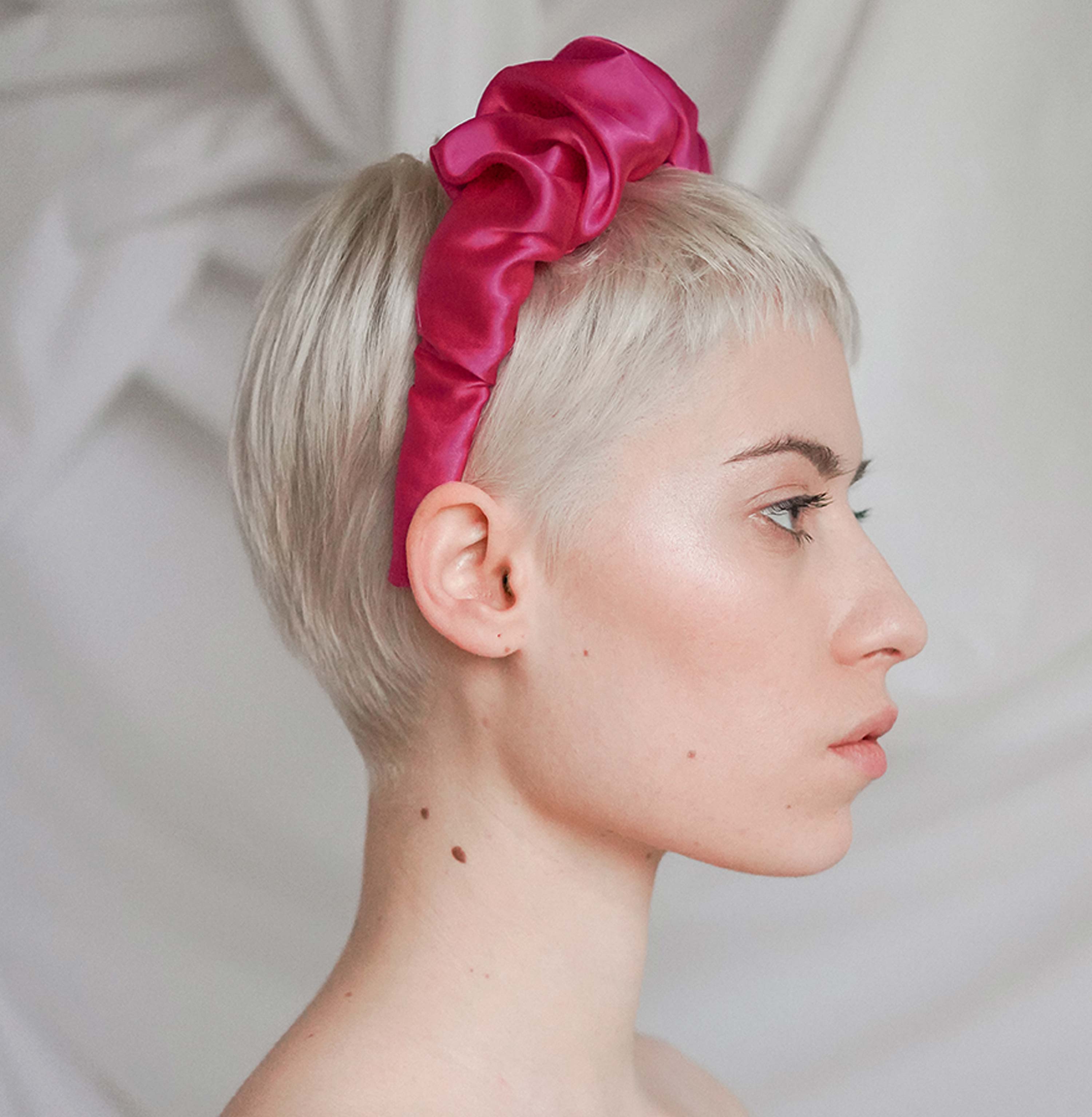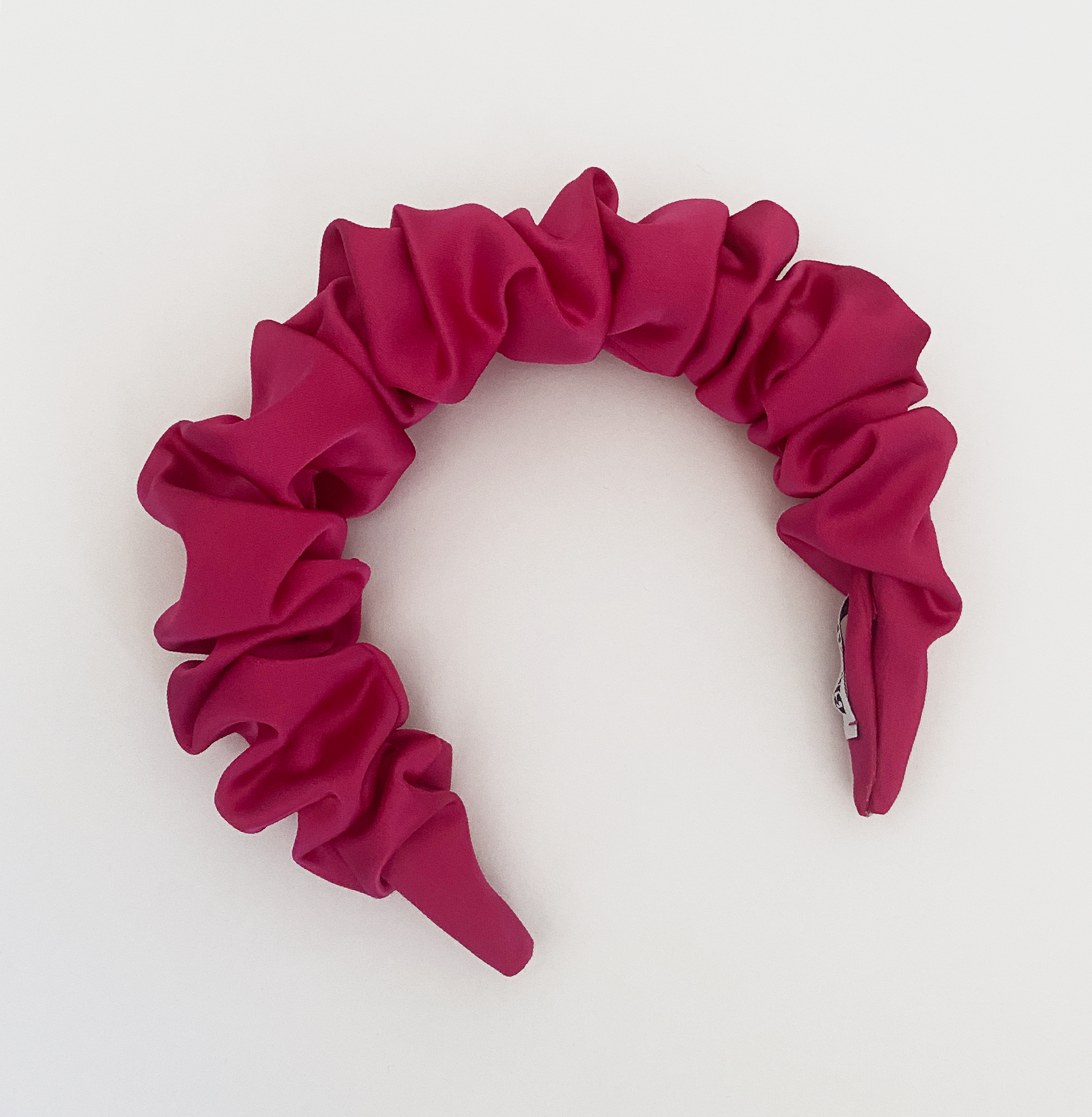 The curly and soft headpiece you need for this season: an exuberant satin headband to adorn the face with pleating and waves. The perfect face-framer. Suitable for all face shapes and hair styles.