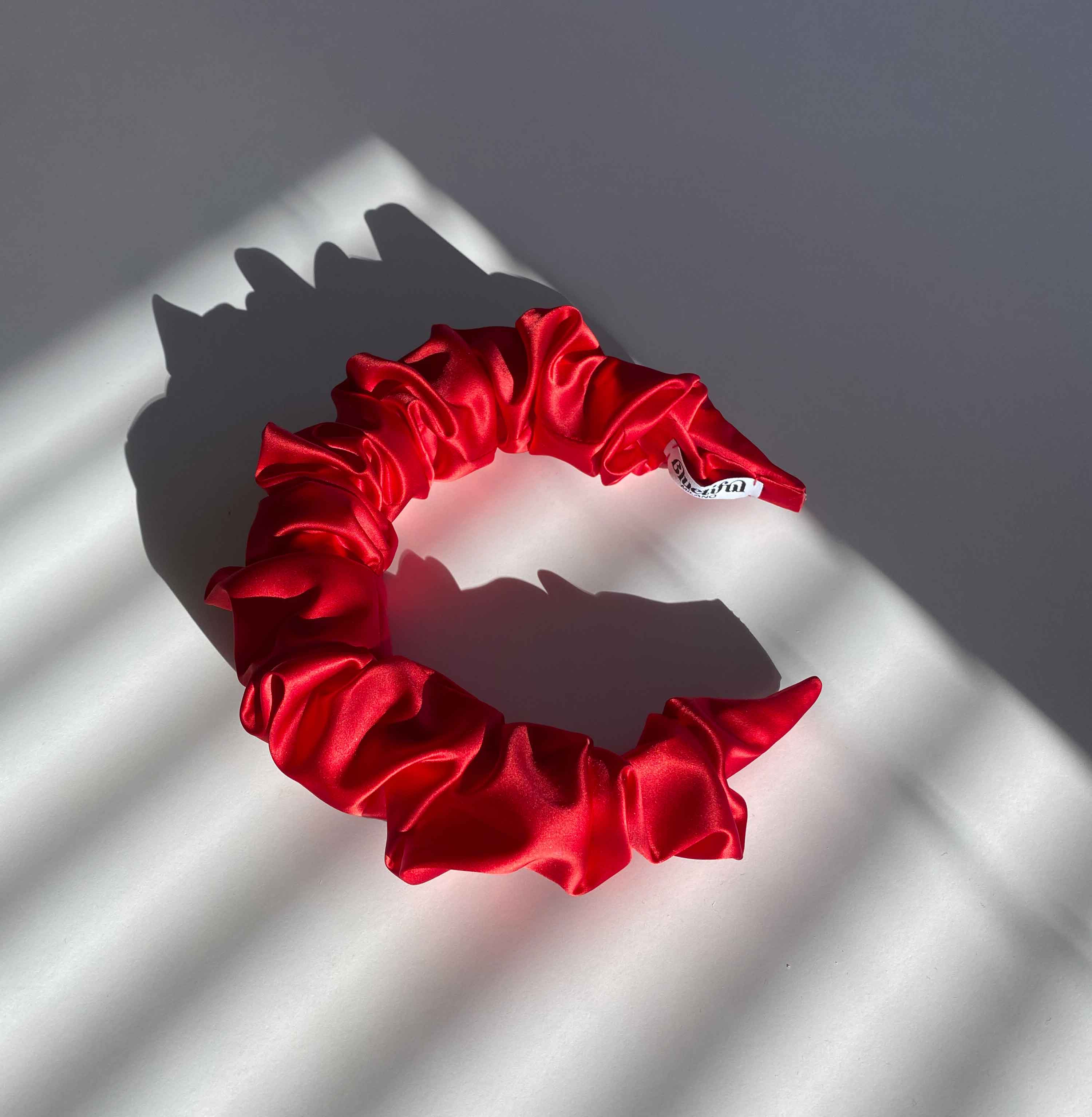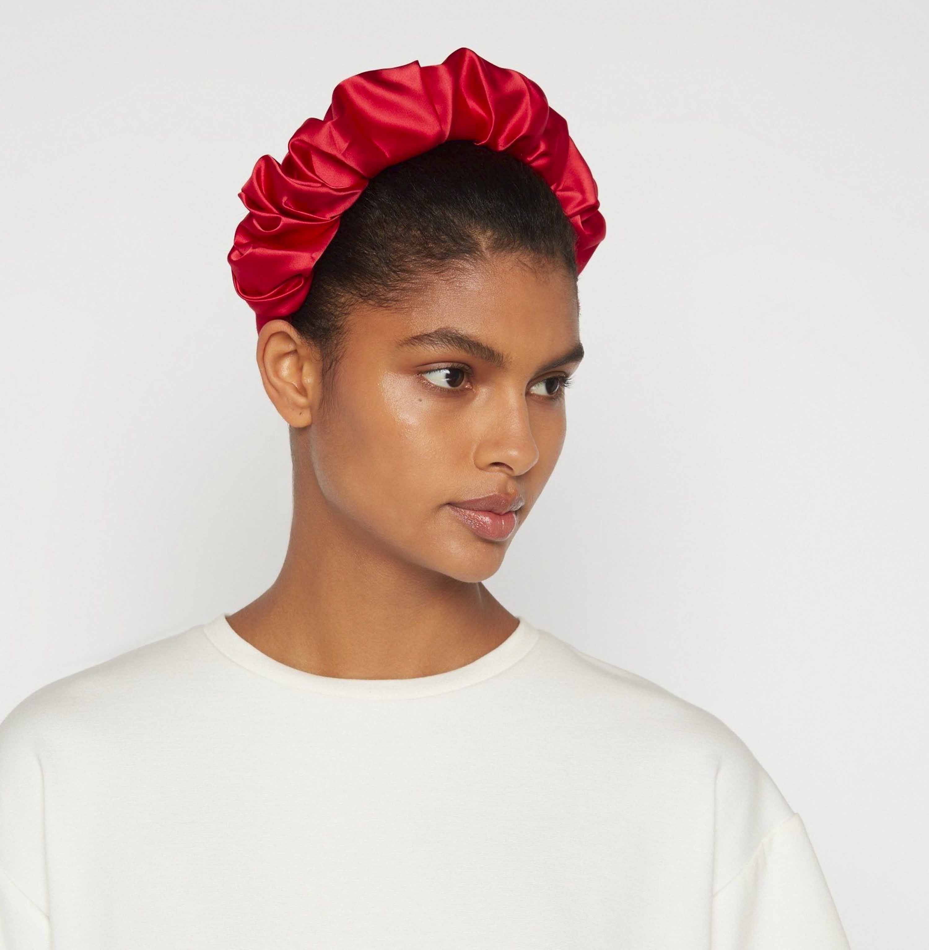 The curly and soft headpiece you need for this season: an exuberant satin headband to adorn the face with pleating and waves. The perfect face-framer. Suitable for all face shapes and hair styles.