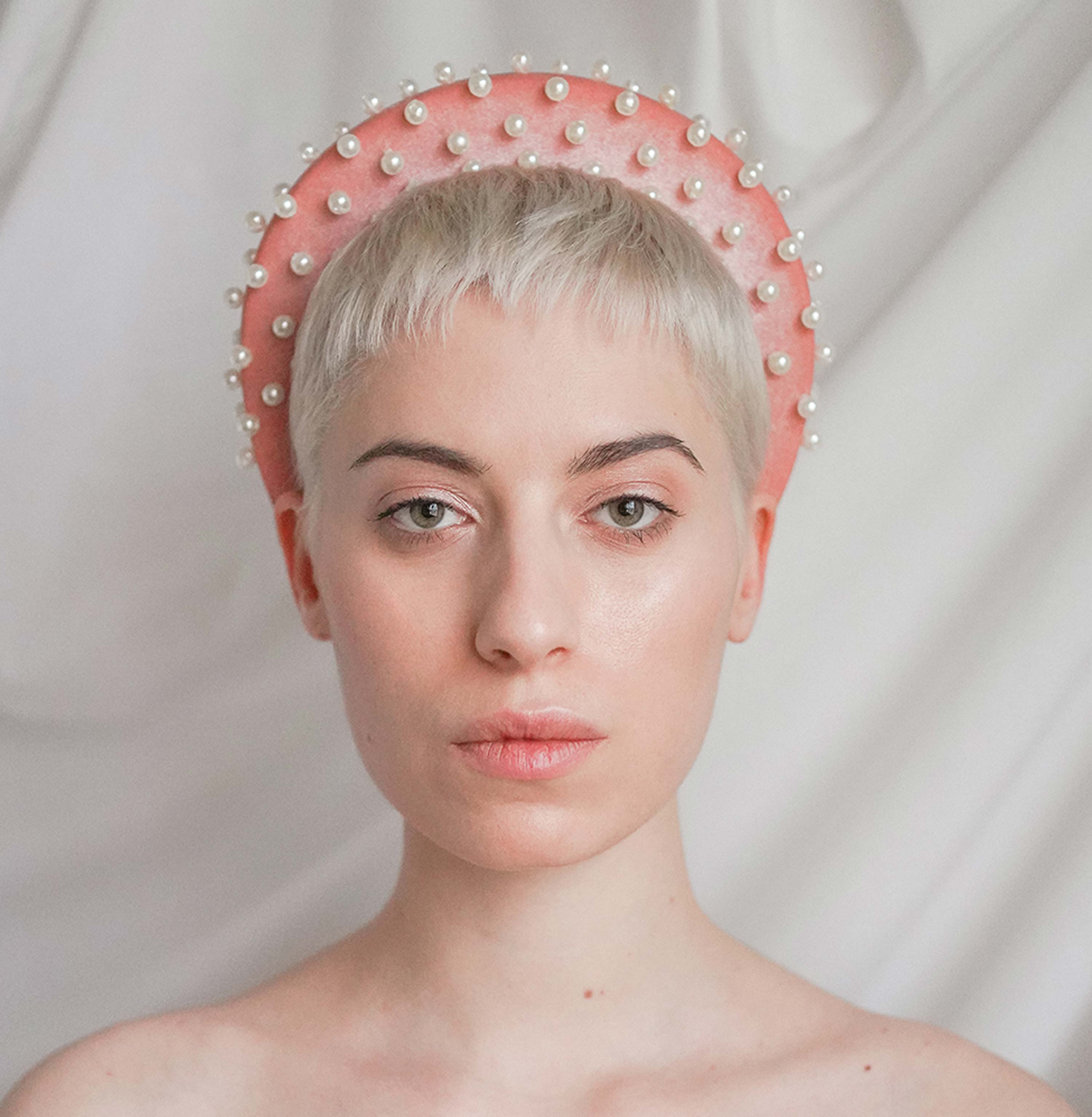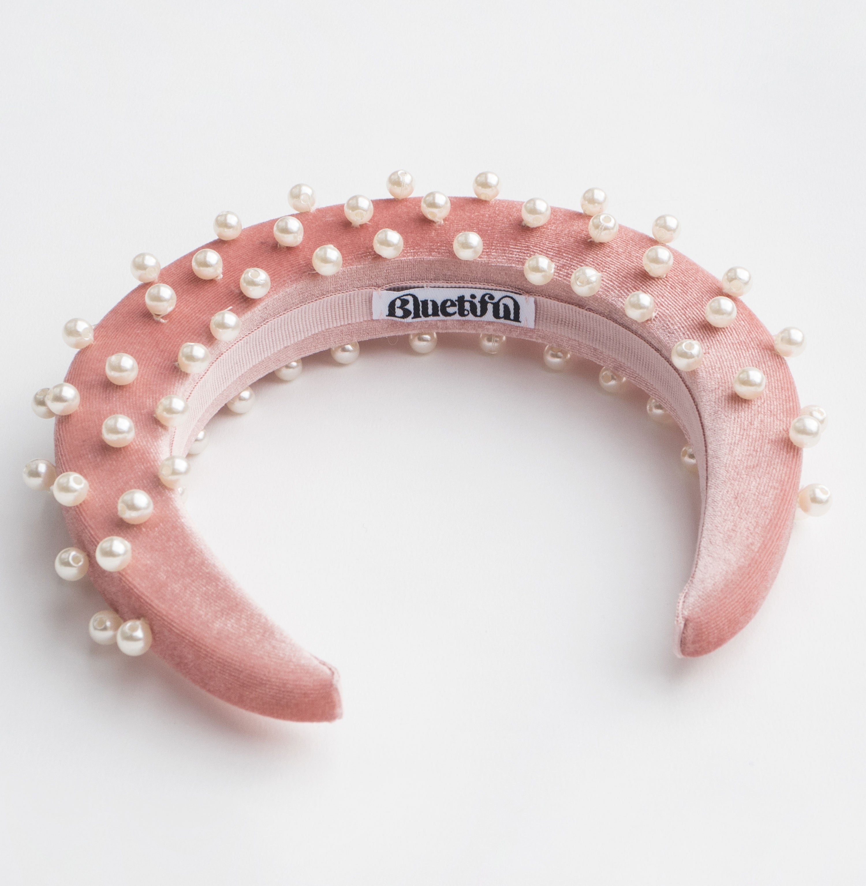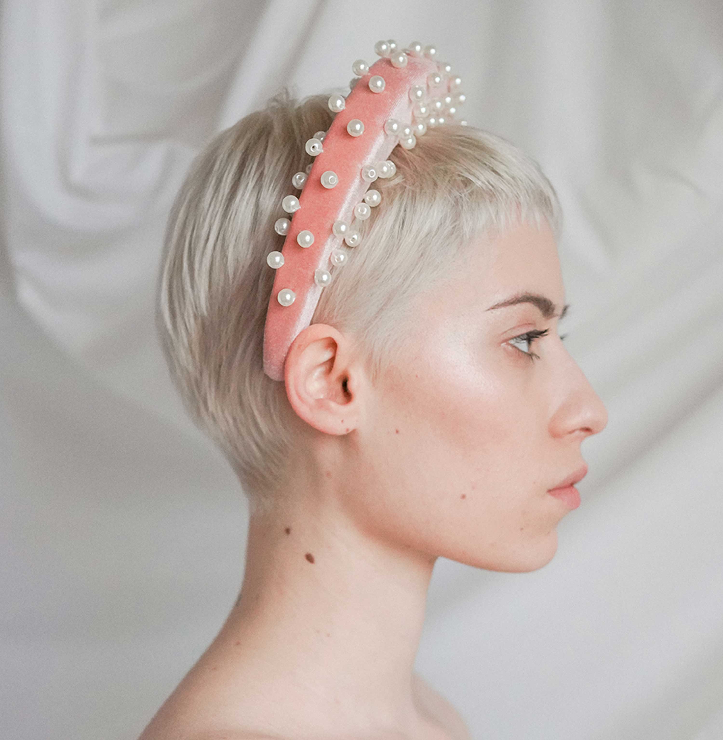 The headpiece of the Renaissance Courtesan: an exuberant velvet padded headband to adorn the face. The perfect face-framer. Suitable for all face shapes and hair styles.