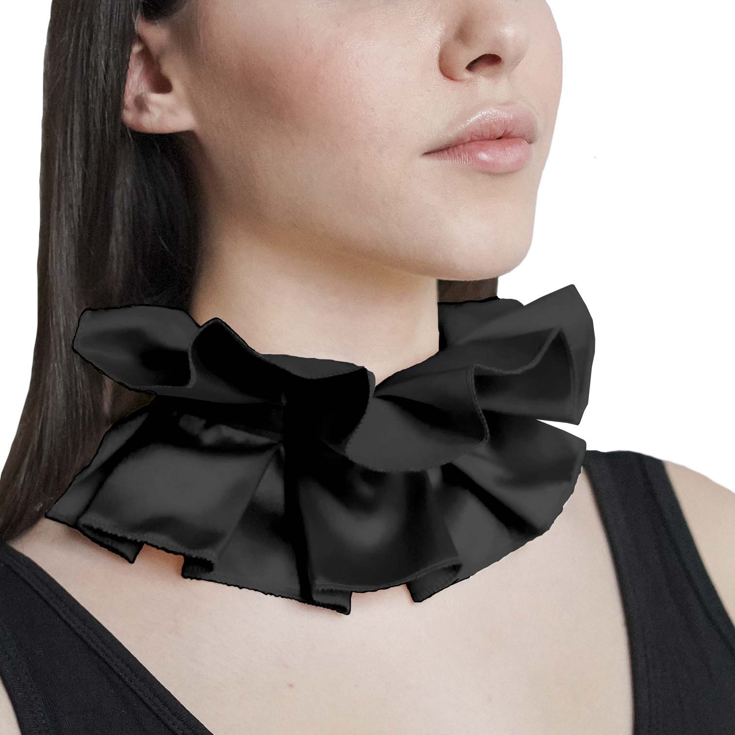 This Pleated Detachable Collar is our reinterpretation of the iconic collar that was worn for the first time by men and women in MidSixteenth Century. The ruff with pleating and flounces perfectly fit any kind of style giving a kinky twist. Instantly upgrade your outfit just by layering it over a T-shirts, a cardigan, a jumper, a coat.Made from pleated satin and finished with a ribbon.