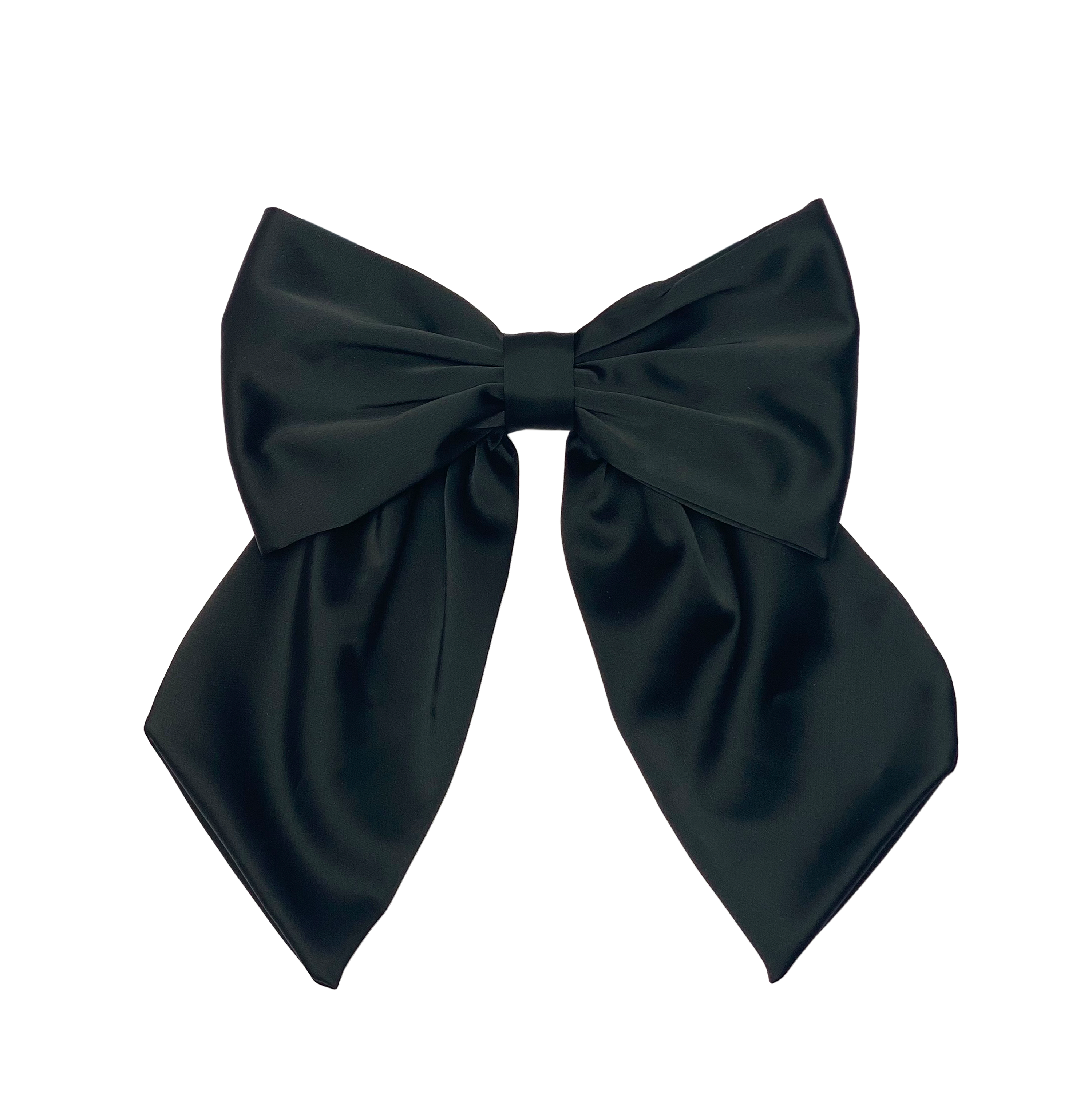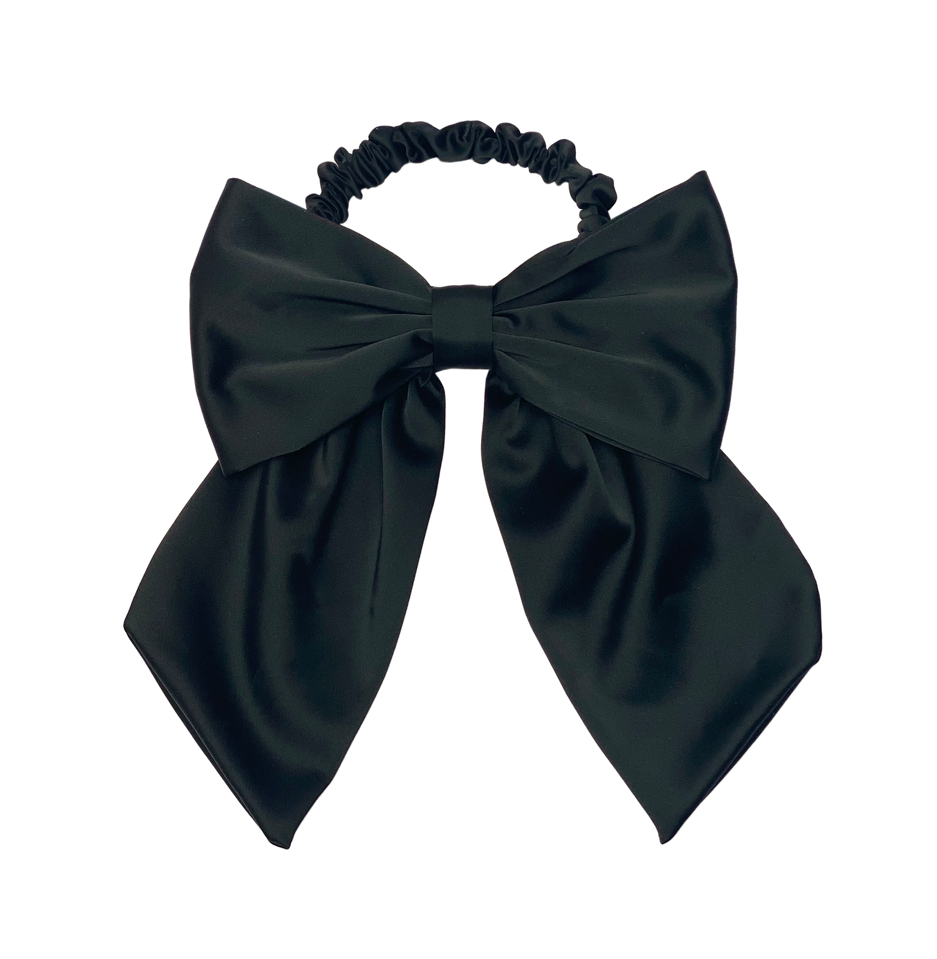 A scrunchie with a large bow to wear on the hair, for a classic and effortless hairstyle.
