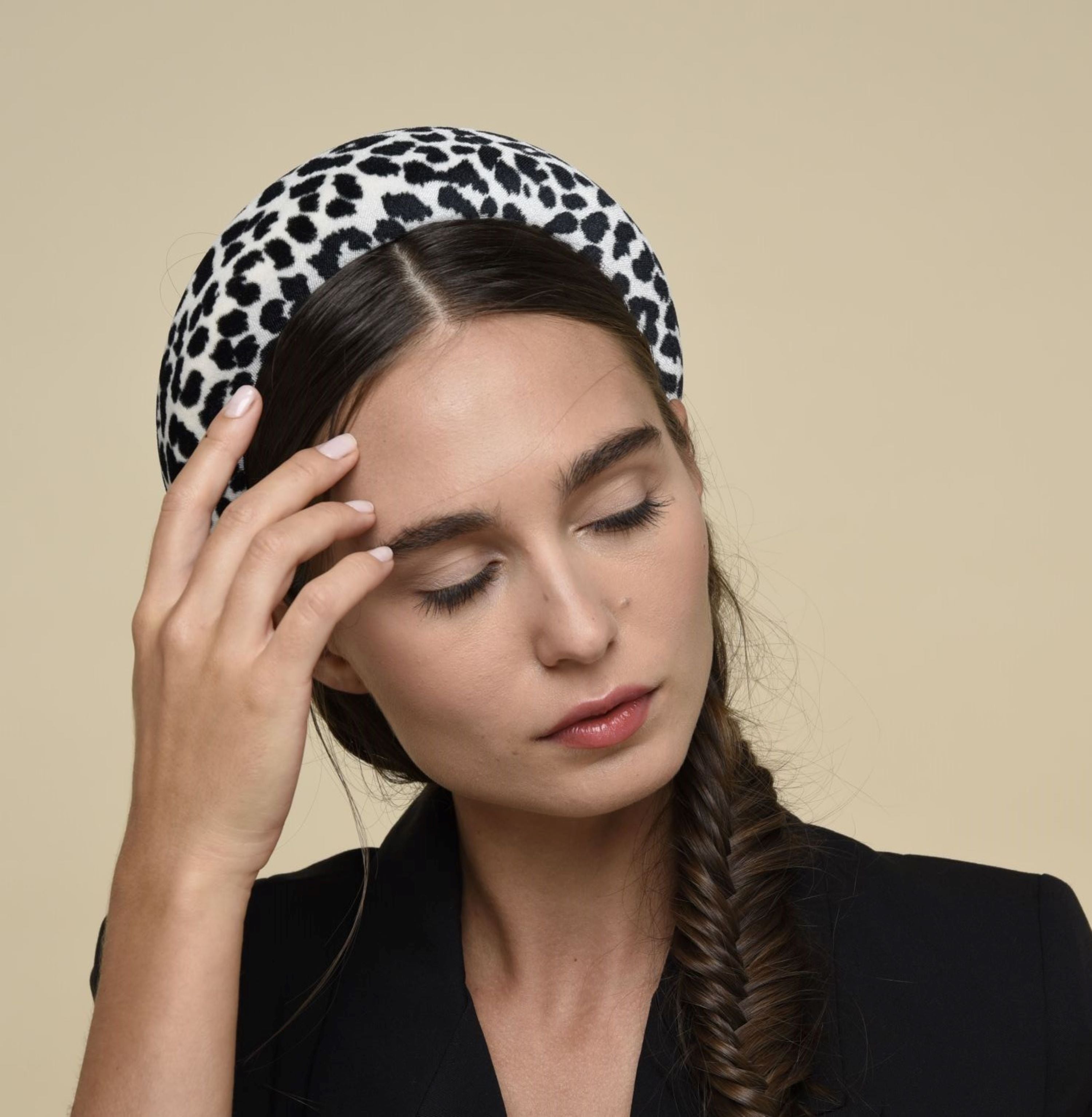 The headpiece of the Renaissance Courtesan: an exuberant velvet padded headband to adorn the face. The perfect face-framer.