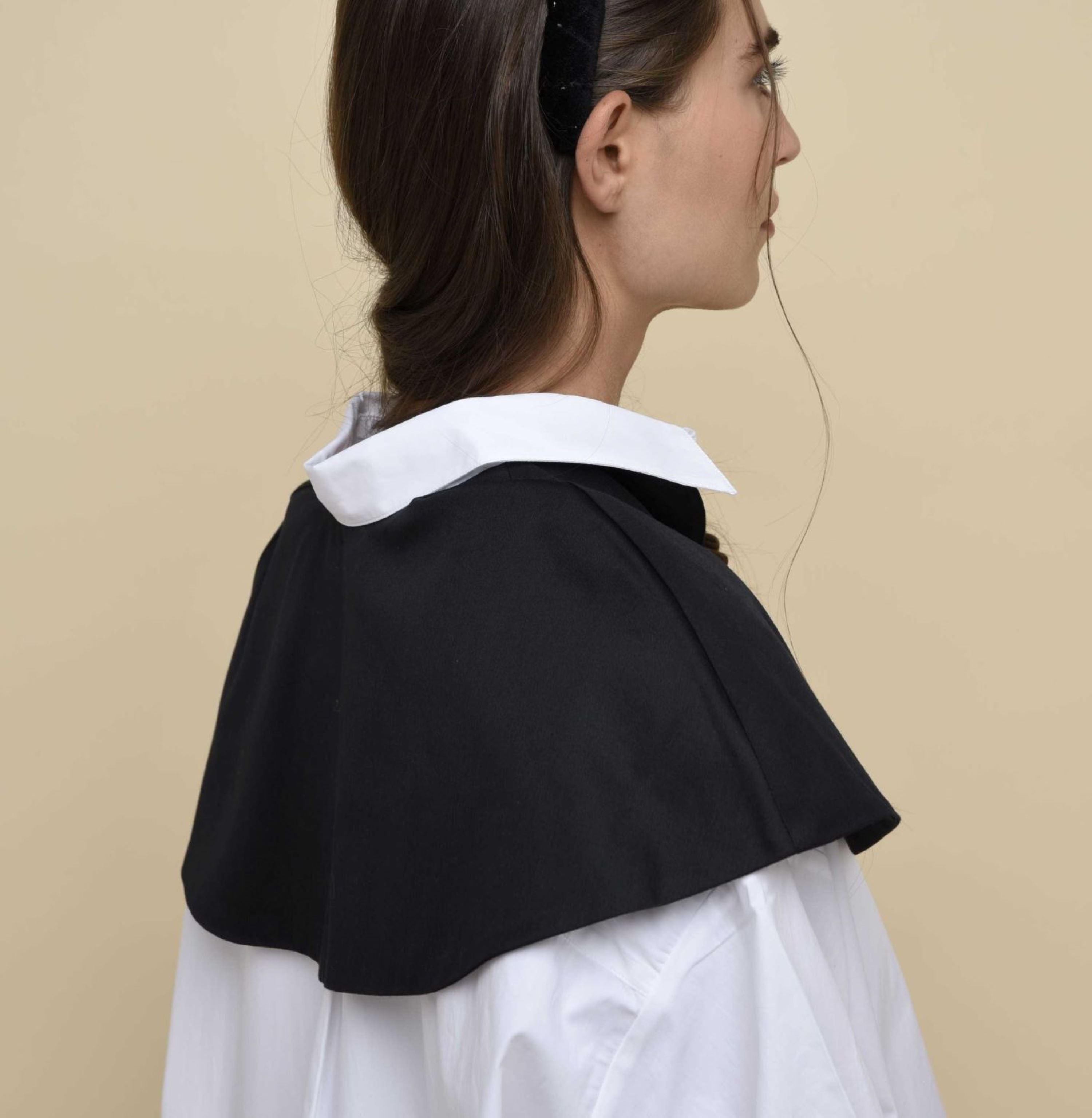 This Pleated Detachable Collar is our reinterpretation of the iconic collar that was worn for the first time by men and women in MidSixteenth Century. The ruff with pleating and flounces perfectly fit any kind of style giving a kinky twist. Instantly upgrade your outfit just by layering it over a T-shirts, a cardigan, a jumper, a coat. Made from cotton with silk effect and finished with a button.