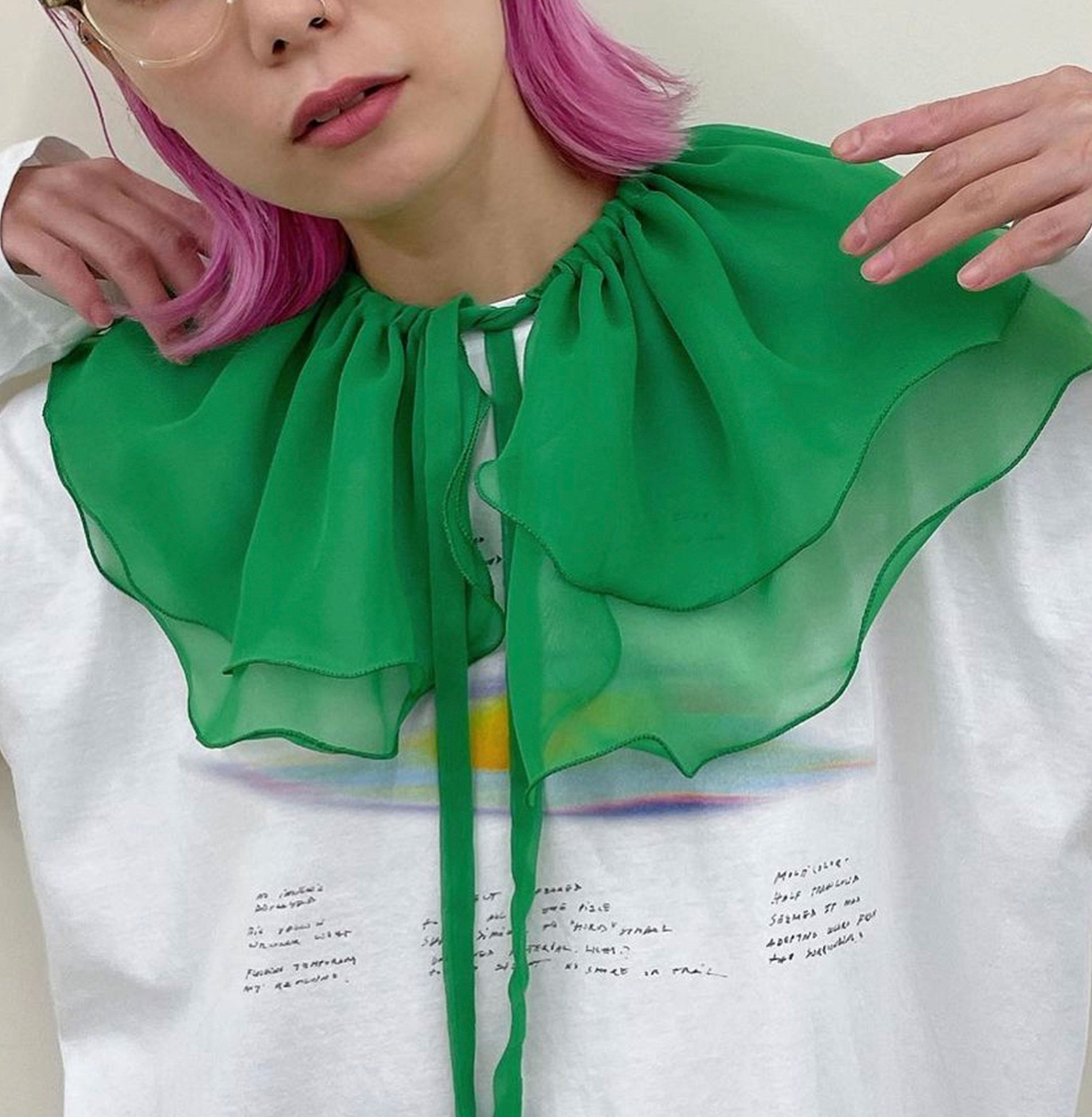 This Pleated Detachable Collar is our reinterpretation of the iconic collar that was worn for the first time by men and women in MidSixteenth Century. The ruff with pleating and flounces perfectly fit any kind of style giving a kinky twist. Instantly upgrade your outfit just by layering it over a T-shirts, a cardigan, a jumper, a coat. Made from pleated chiffon and finished with a ribbon.