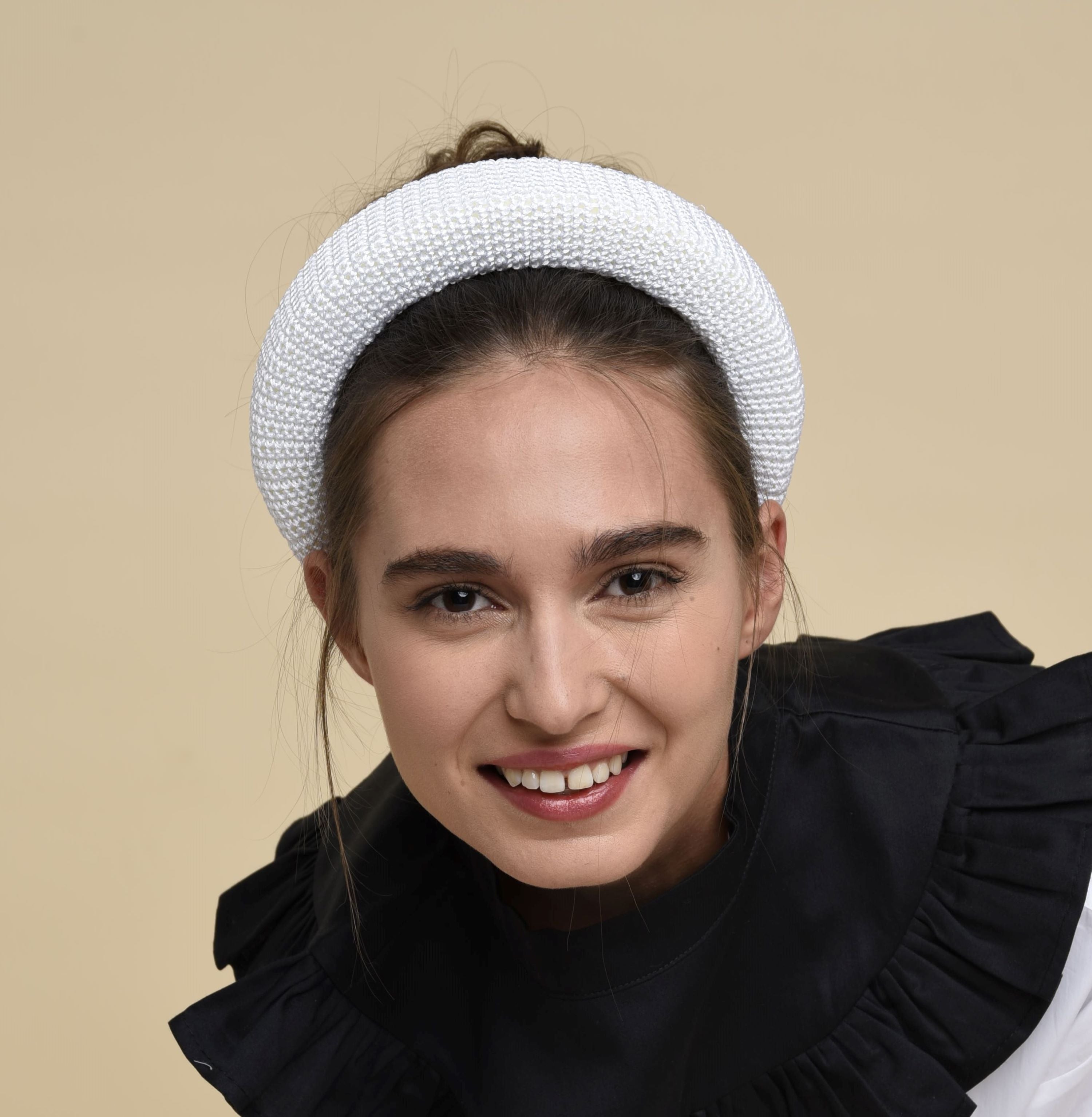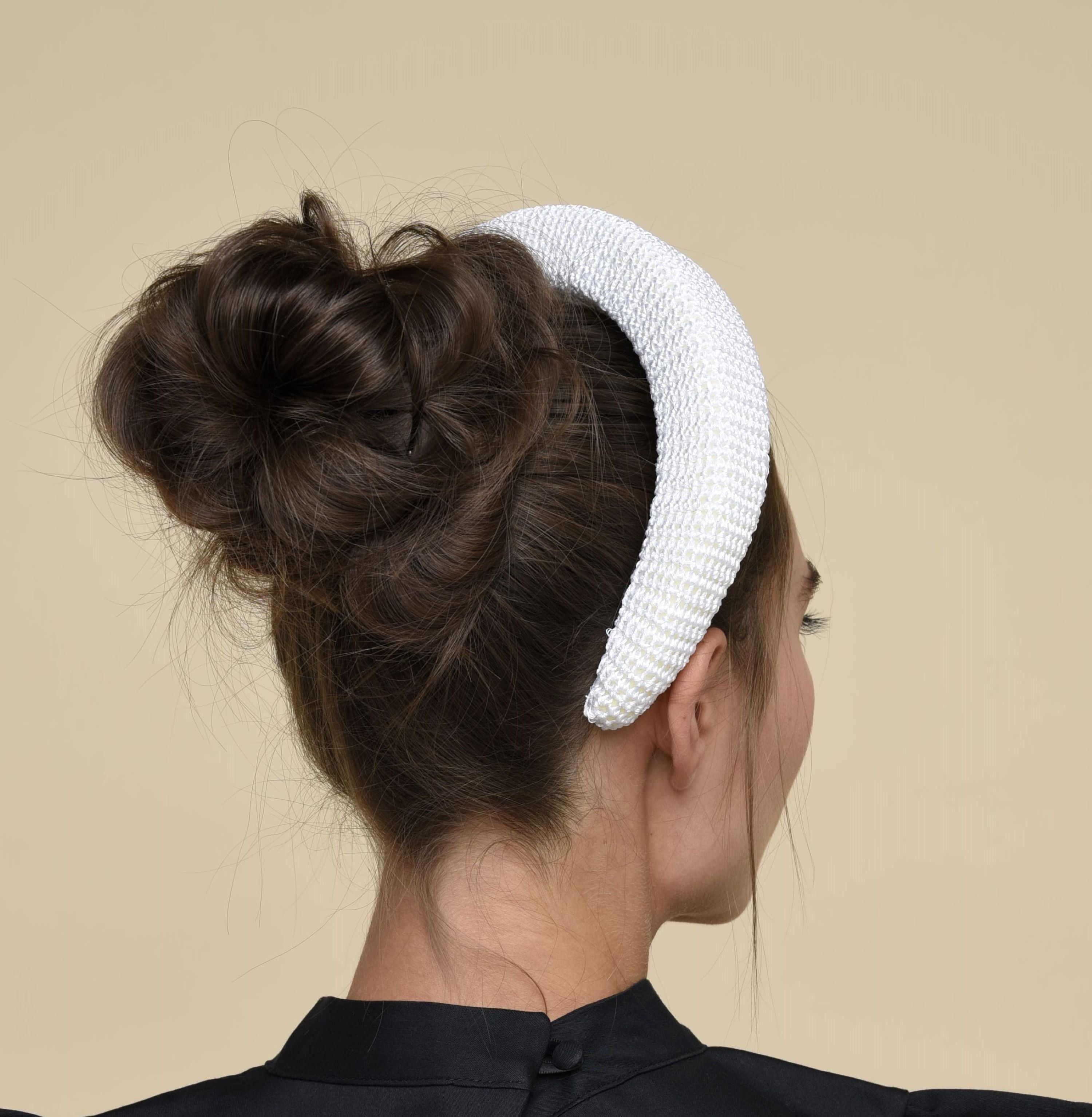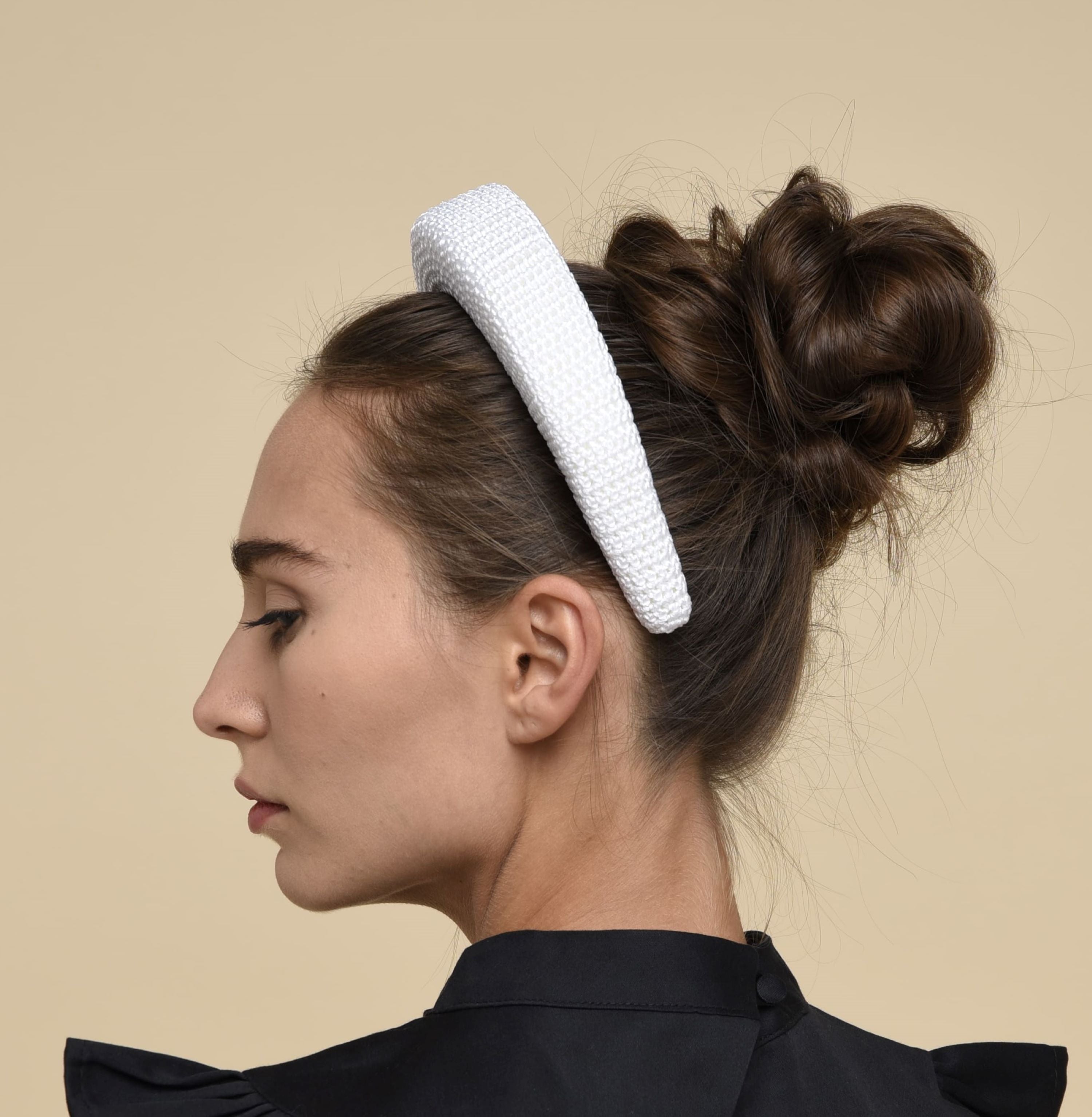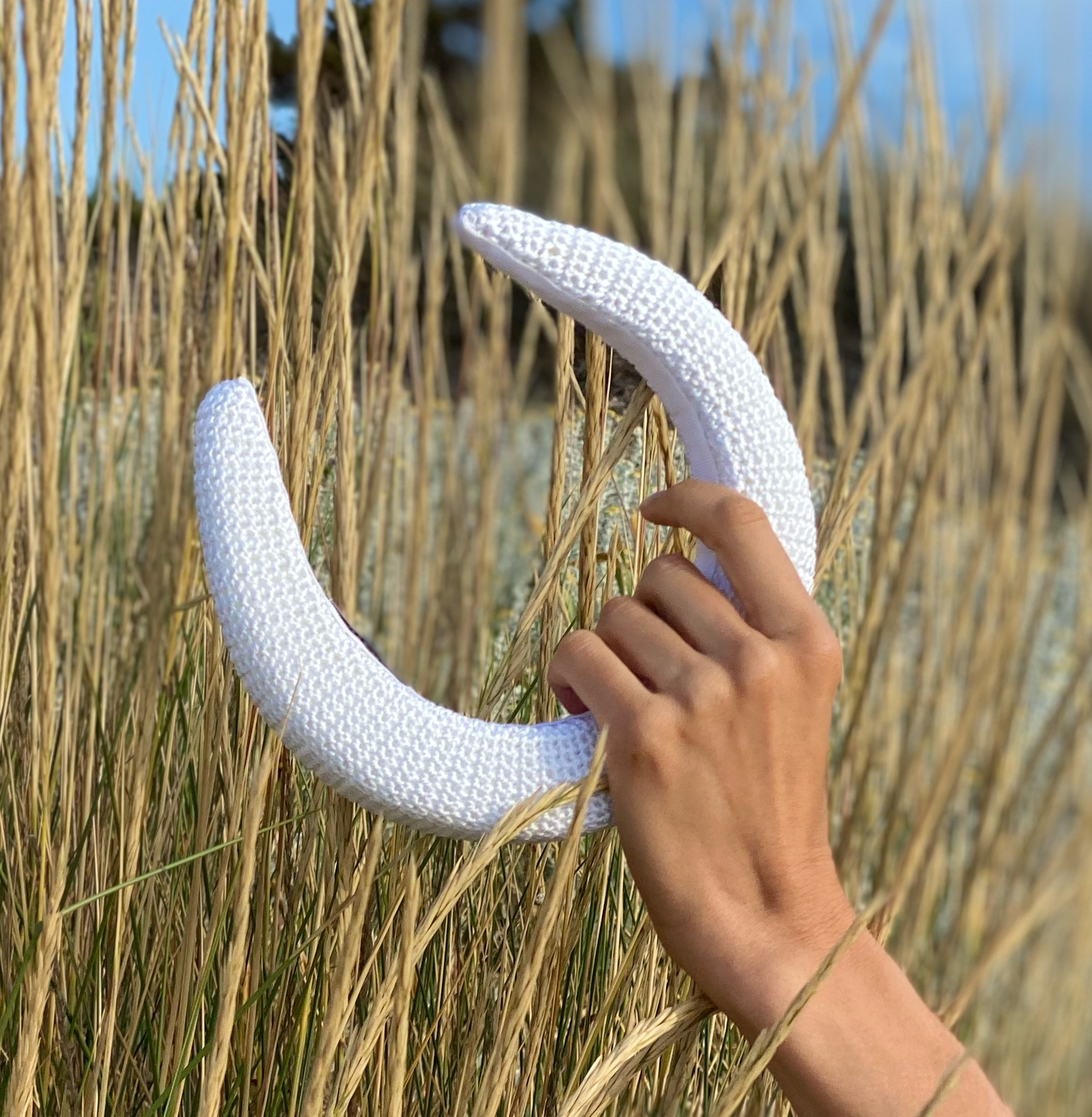 This headband is made of handcrafted crochet fabric. The showy headpiece to adorn the face like the image of auras seen in many paintings. The perfect face-framer. Suitable for all face shapes and hair styles.