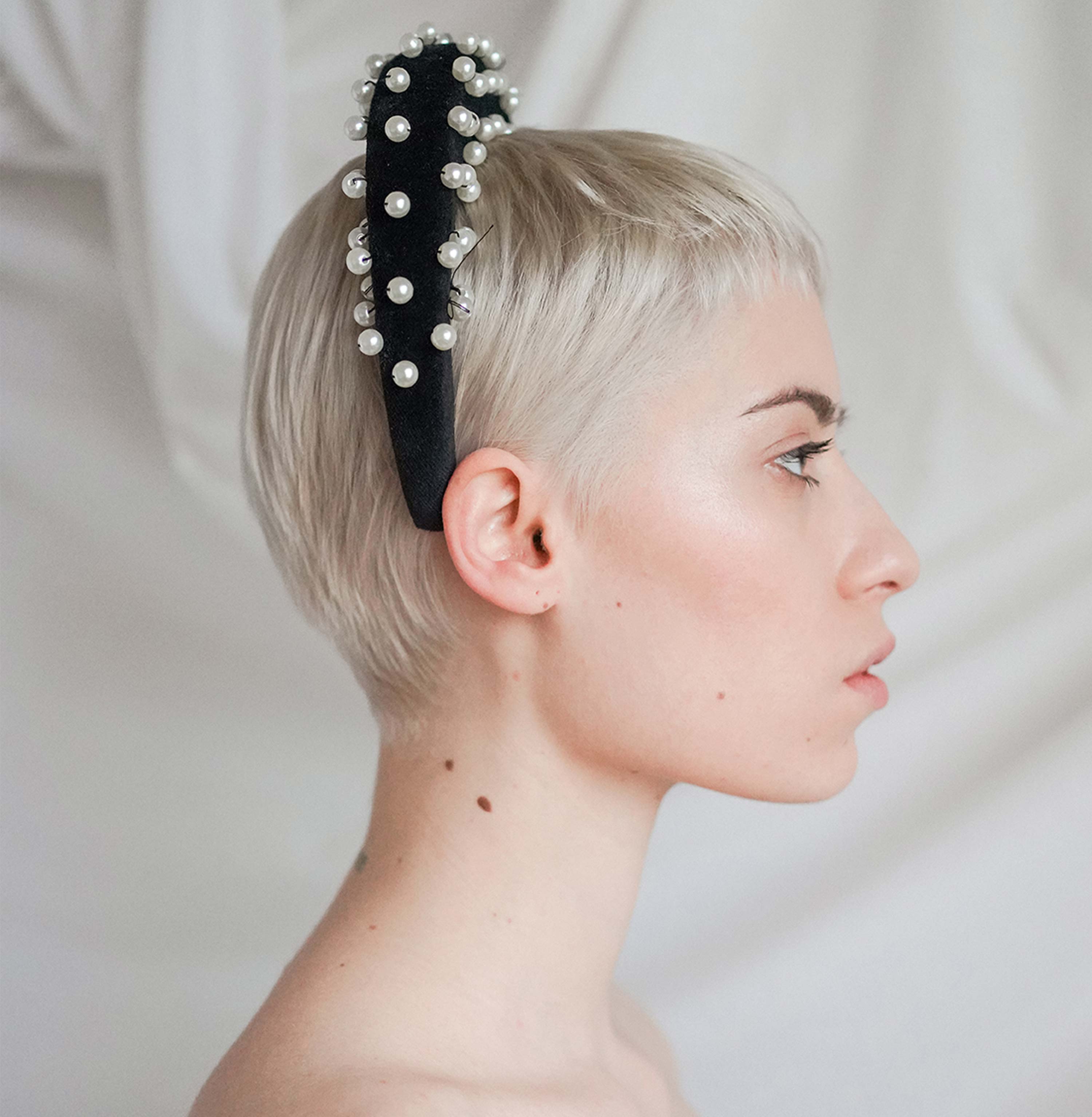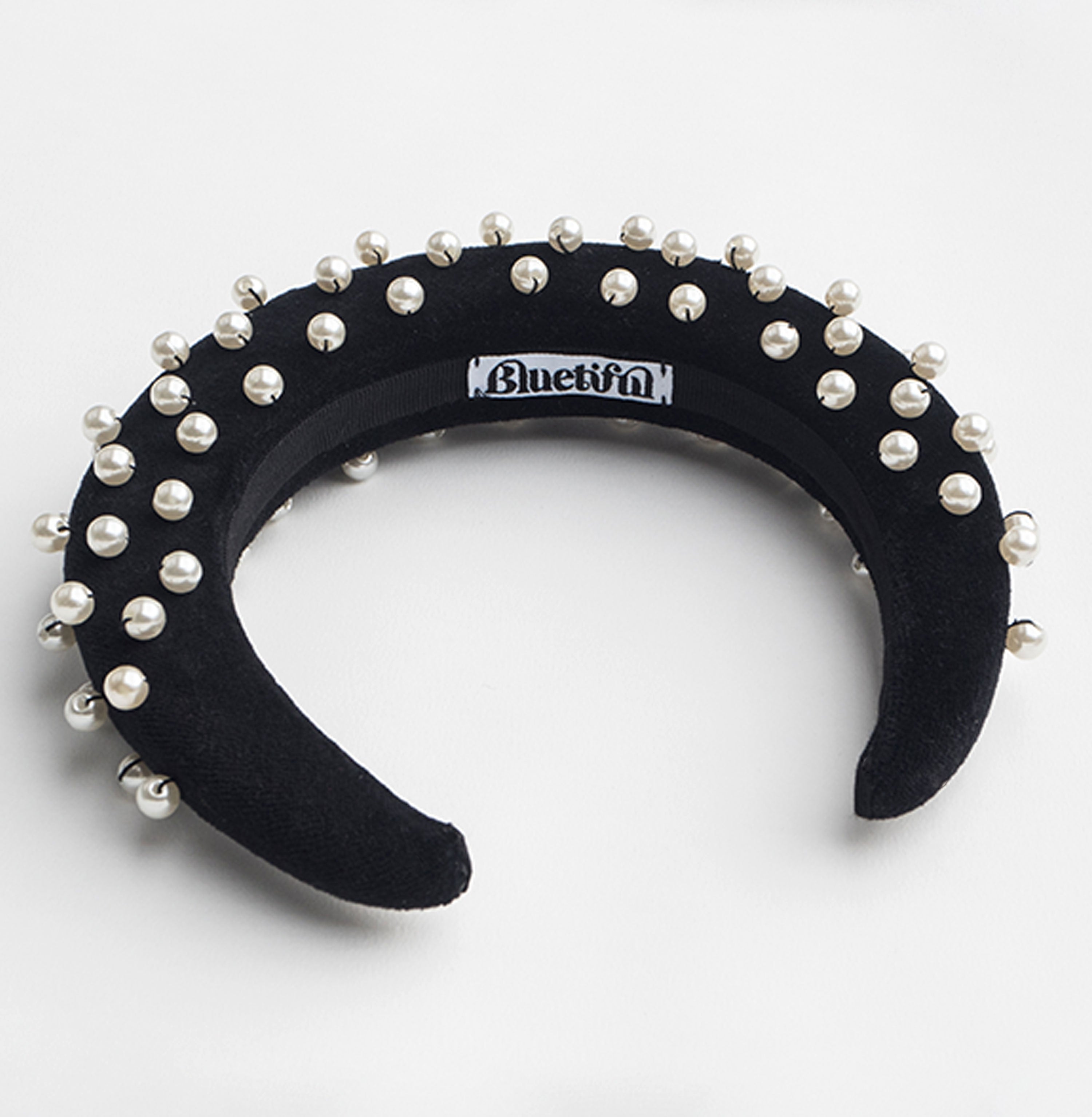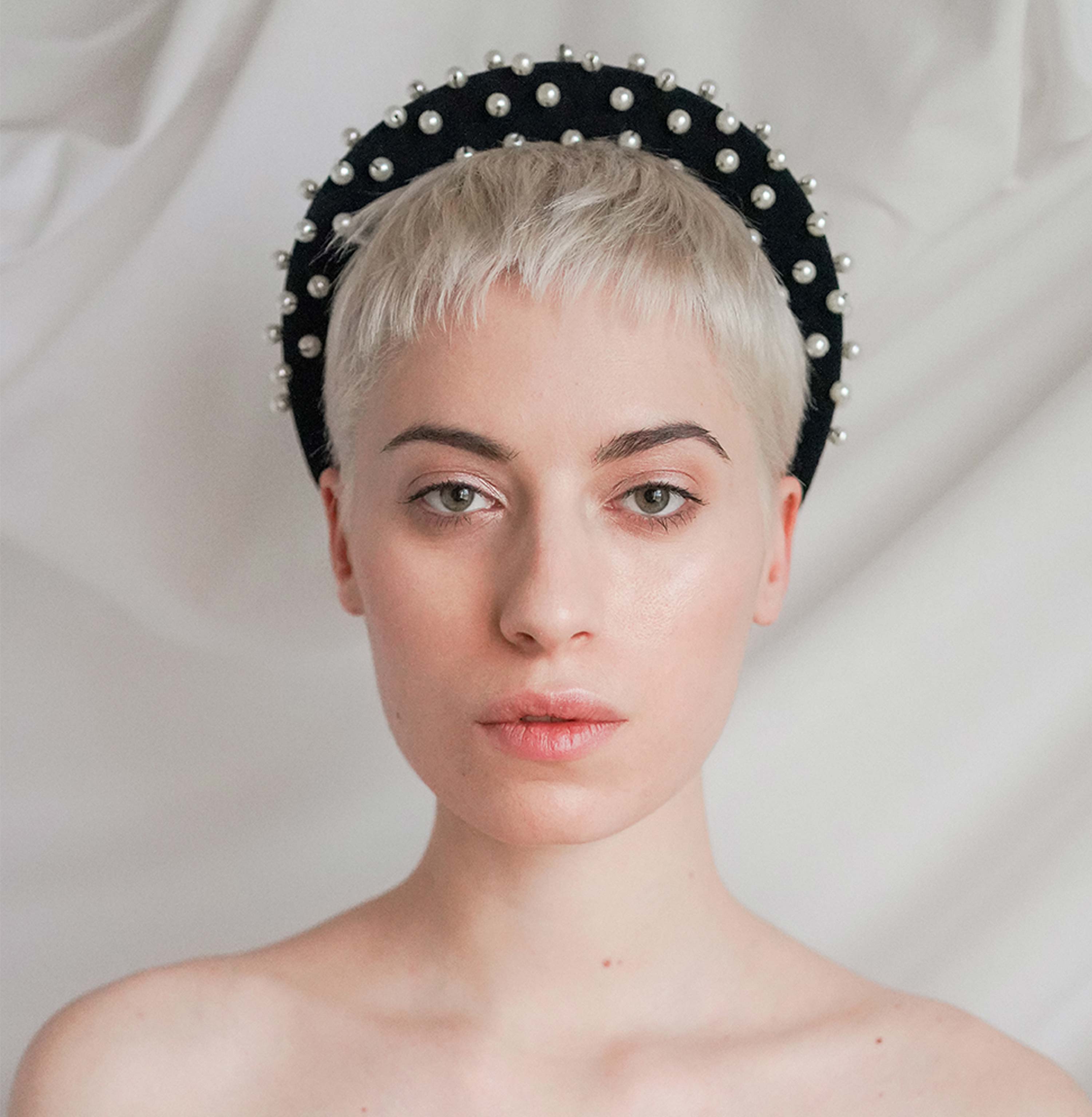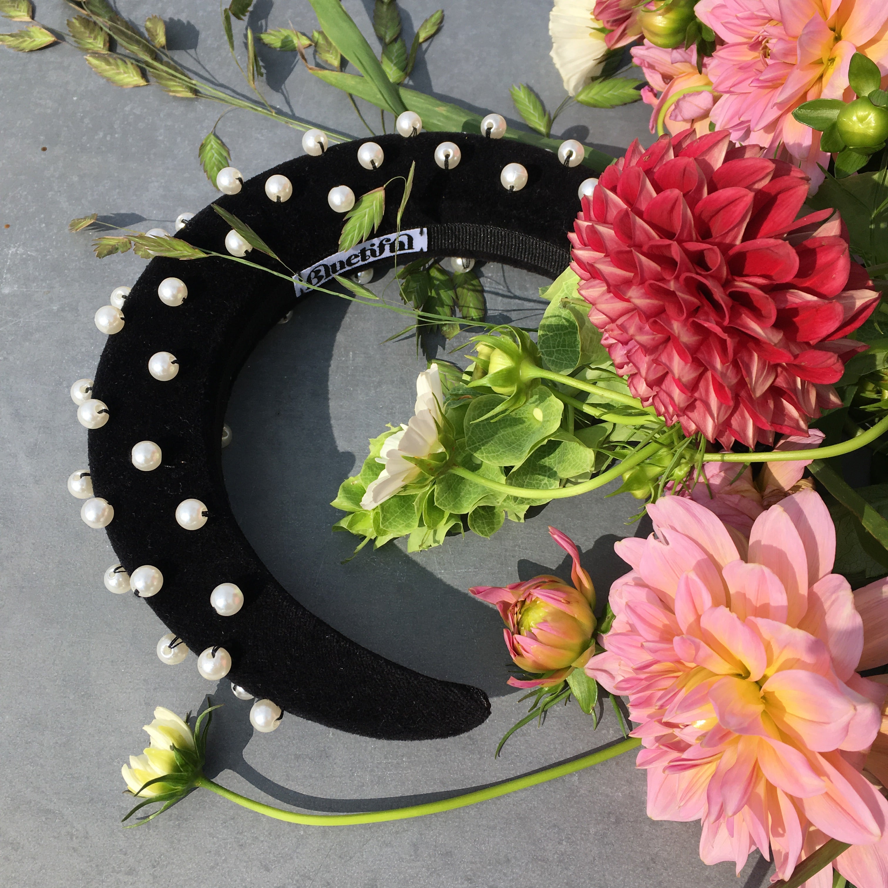 The headpiece of the Renaissance Courtesan: an exuberant velvet padded headband to adorn the face. The perfect face-framer. Suitable for all face shapes and hair styles.