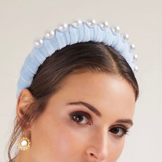 HEADBAND W/T MAXI PEARLS - LIGHT BLUE