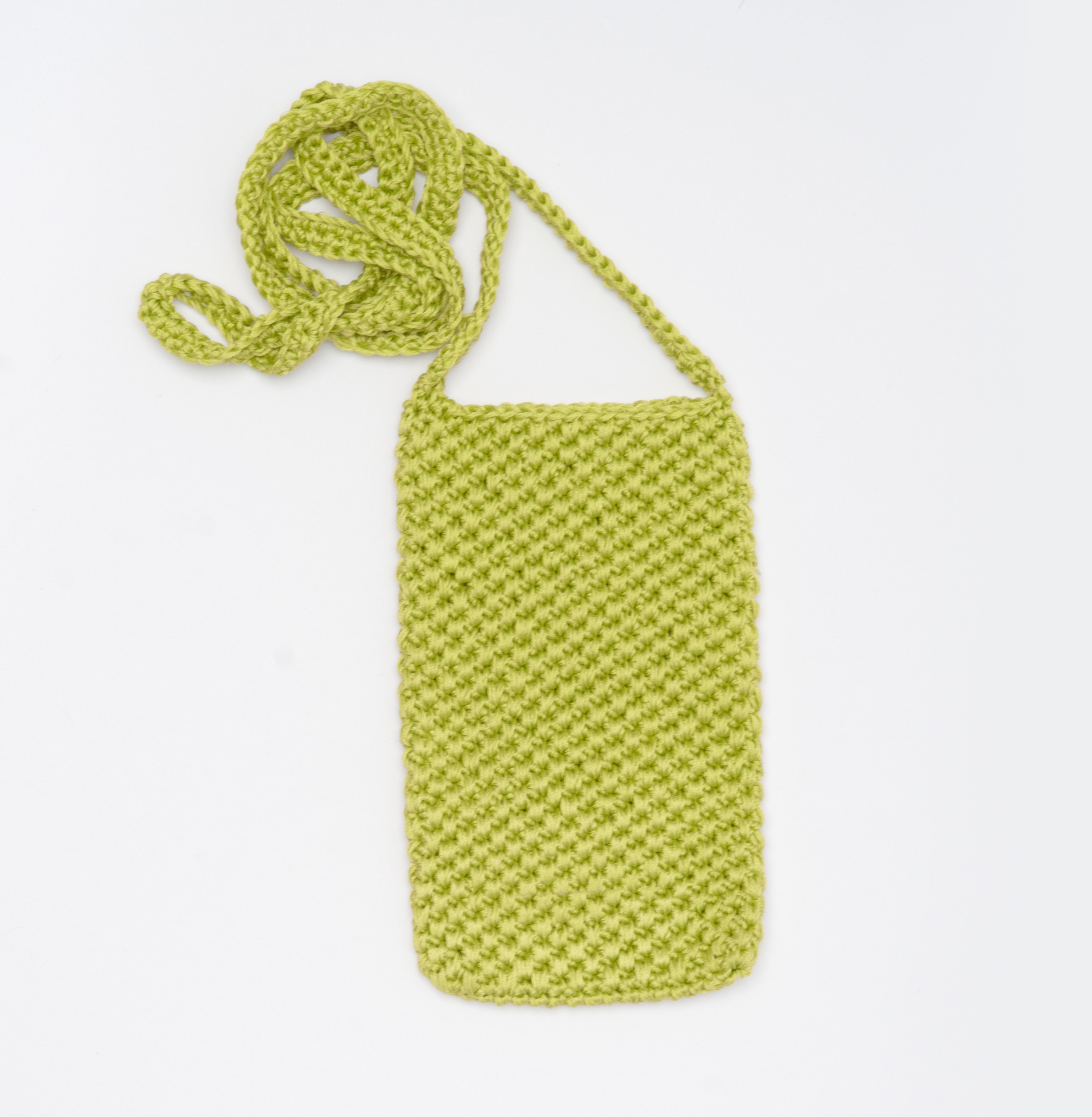 This bag with double pocket is made of handcrafted crochet fabric. It can hold a smartphone and your card holder. The perfect lightweight accessory for summer.