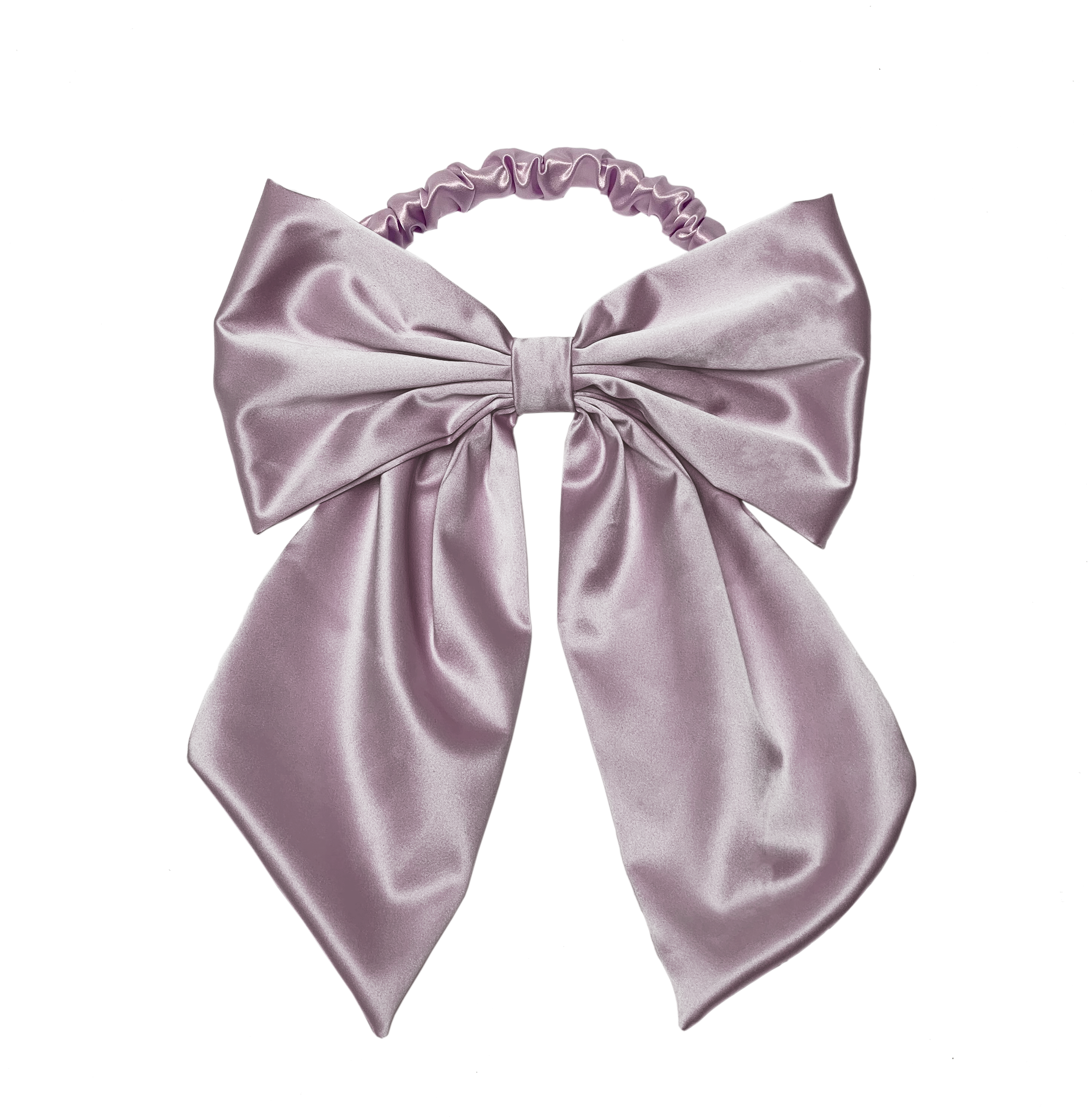 A scrunchie with a large bow to wear on the hair, for a classic and effortless hairstyle.